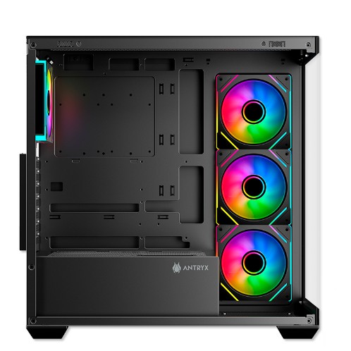 Fantásticos efectos de luz ARGB: 3 ventiladores ARGB con efecto infinito de 12cm incluidos en la parte lateral y 1 ventilador ARGB con efecto infinito en la parte trasera, con más patrones y más modos de color